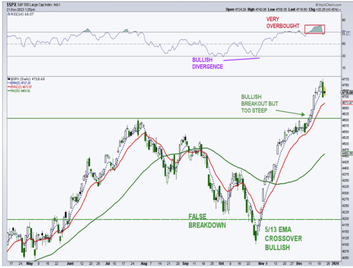 “Perusing hundreds of charts, some Technology stocks are extremely extended. In addition, many of 2023’s laggards are also very extended after huge recoveries. That doesn’t leave too many attractive charts, at least in the near term,” said technical analyst Mark Arbeter, president of Arbeter Investments, in a Thursday note.